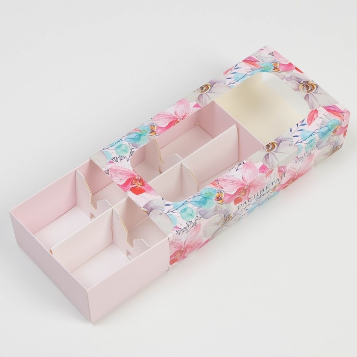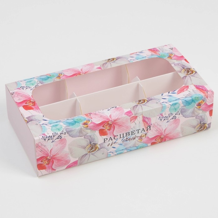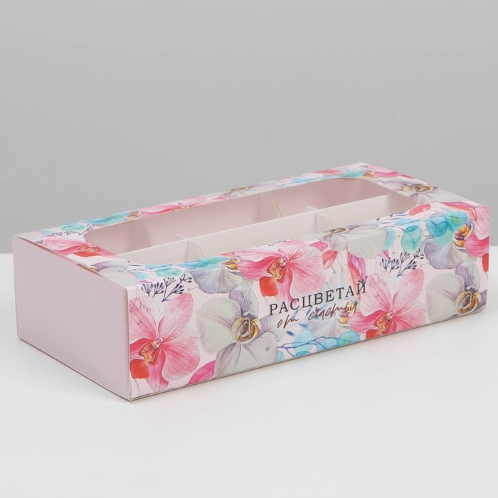 Коробка под 6 конфет, кондитерская упаковка «Расцветай от счастья», 10.2 х 20 х 5 см
