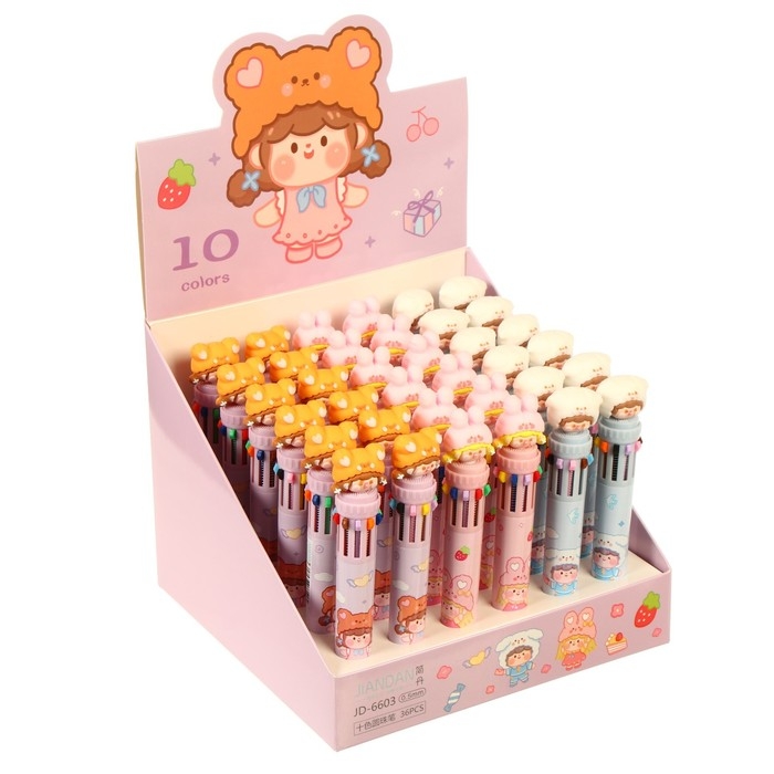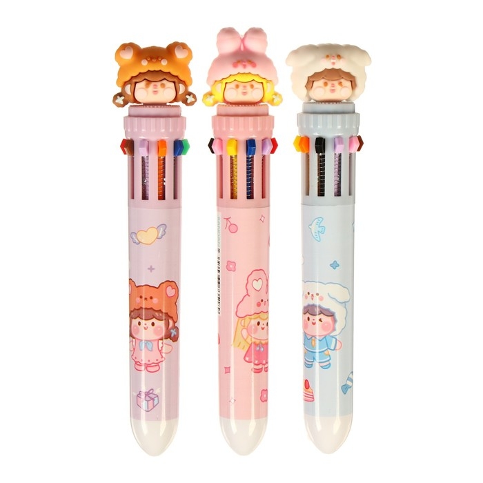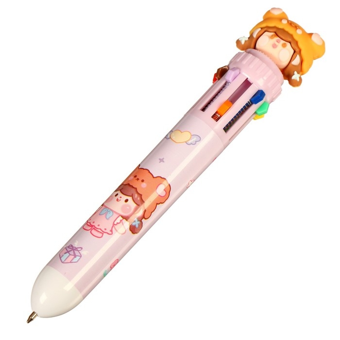 Ручка шариковая "Шапочка" 10-цветная, 0.5 мм, МИКС (штрихкод на штуке)