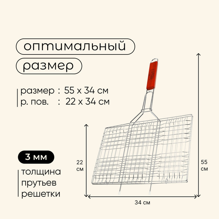 Решётка гриль для мяса maclay, 22x34 см, хромированная сталь, для мангала