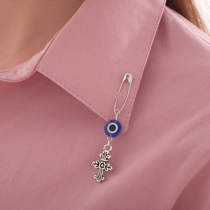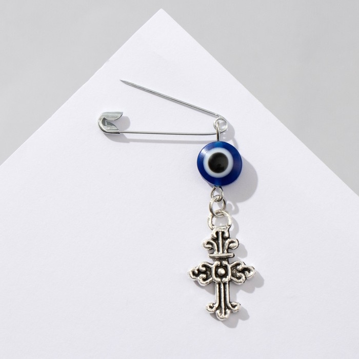 Булавка-оберег «Защита от сглаза», крест, 2,2 см, цвет бело-синий в серебре