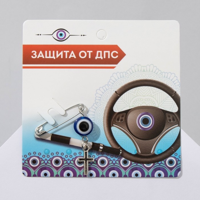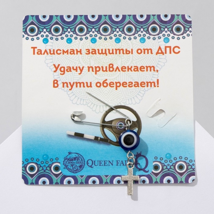 Булавка-оберег «Защита на дороге», крестик, 2,2 см, цвет бело-синий в серебре