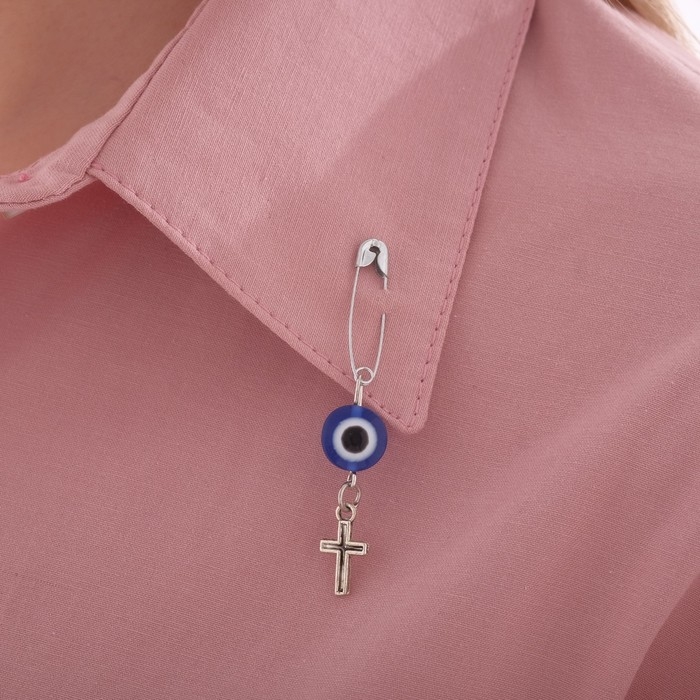 Булавка-оберег «Защита от сглаза», 1,8 см, цвет синий в серебре