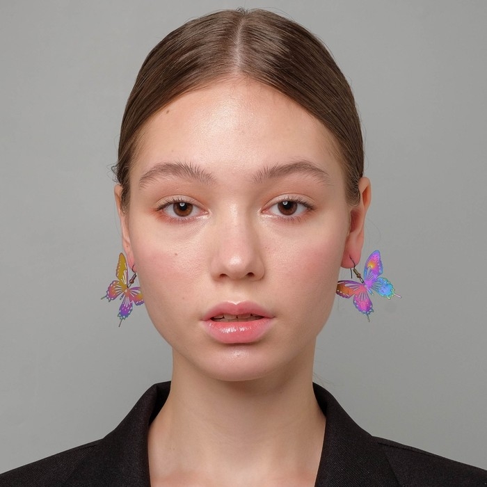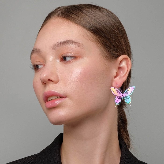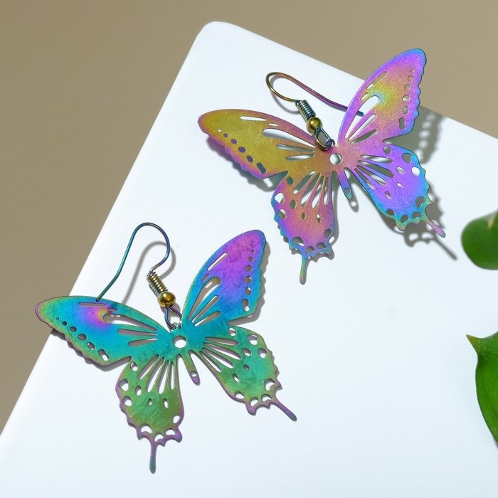Серьги металл «Бабочки» кружевные, цвет бензиновый