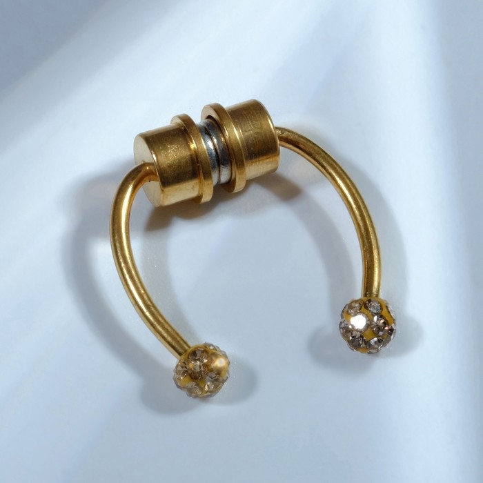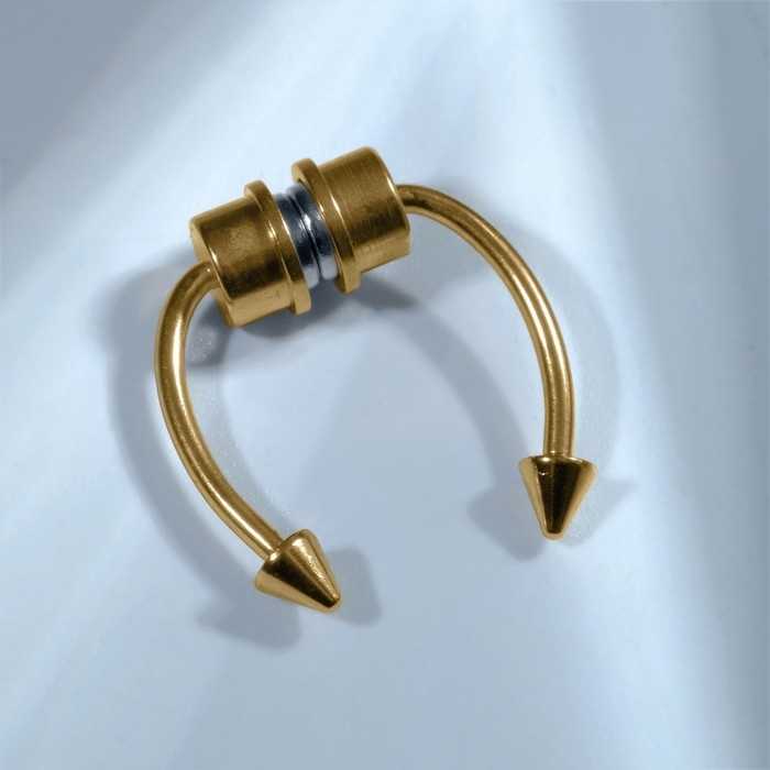 Пирсинг в нос (фейк для септума) со сменными насадками, на магните, L=17 мм, цвет золото