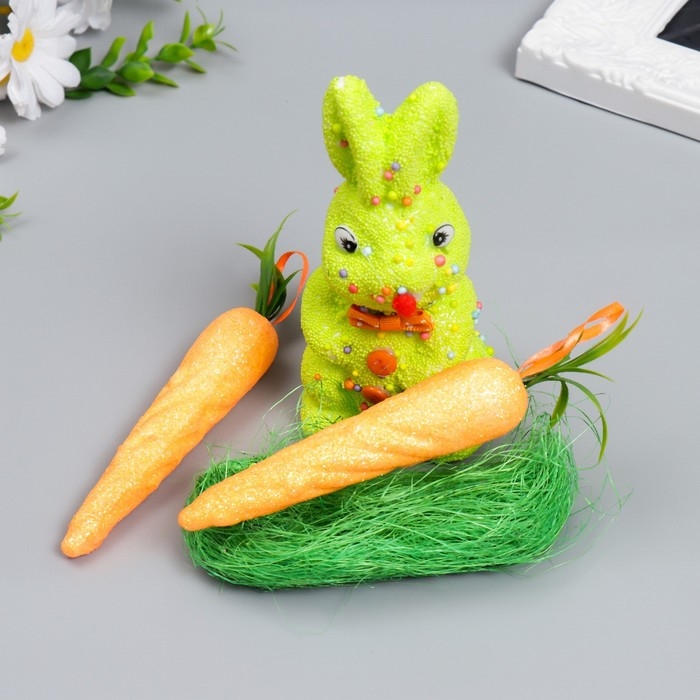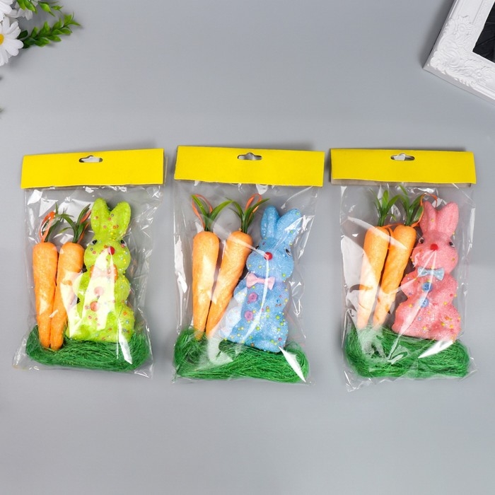 Декор "Зайчик с морковками и травкой" набор 4 шт МИКС 15 см