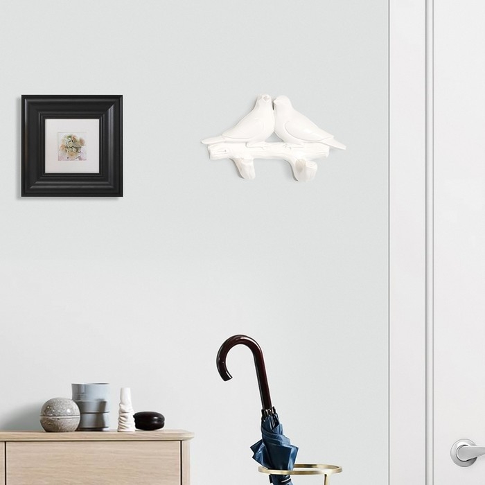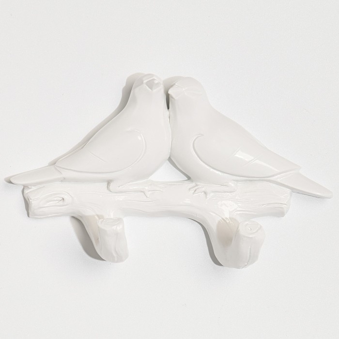 Декор настенный-вешалка "Голубки", 10,5 x 7 см, белый