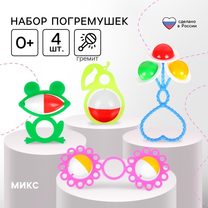 Набор погремушек «Ладушки», 4шт, цвет МИКС, Аэлита