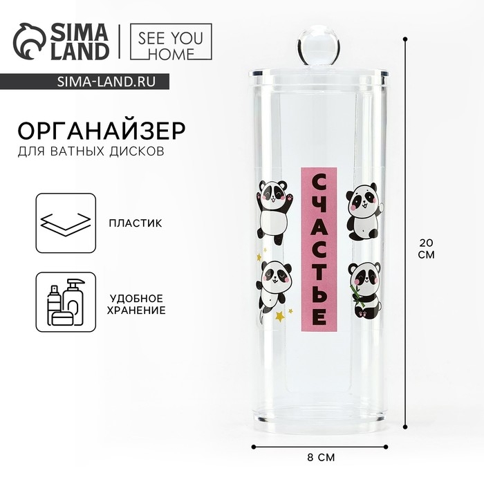 Органайзер для хранения ватных дисков «Счастье», 20 х 8 см, прозрачный