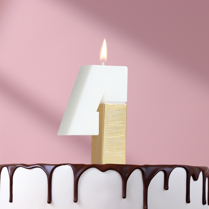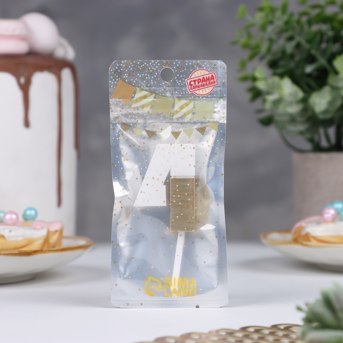 Свеча в торт "Манхеттен", цифра "4", белая с золотом, 5 см