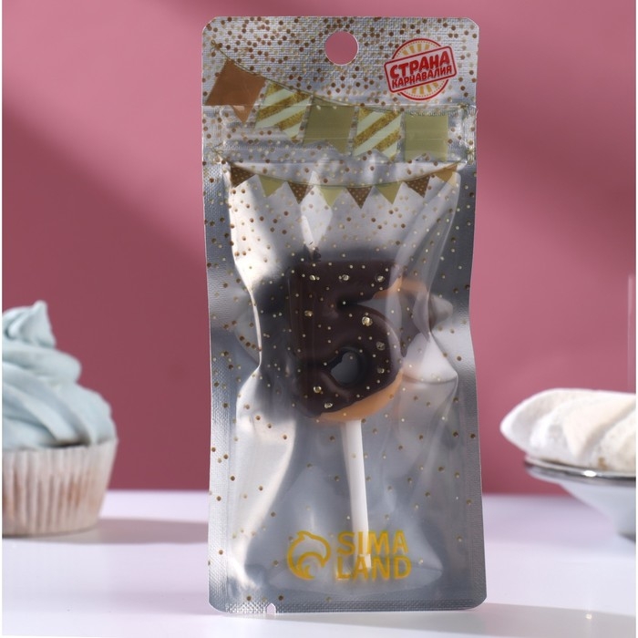 Свеча в торт "Шоколадная глазурь", цифра "5", 3,8 см