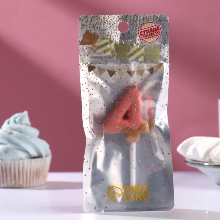 Свеча в торт "Клубничная глазурь", цифра "4", розовая, 3,8 см