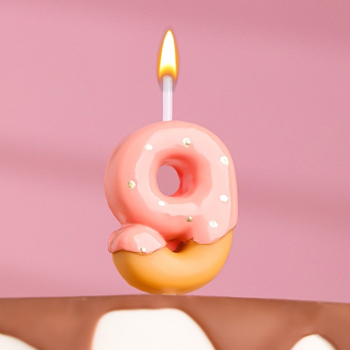 Свеча в торт "Клубничная глазурь", цифра "9", розовая, 3,8 см