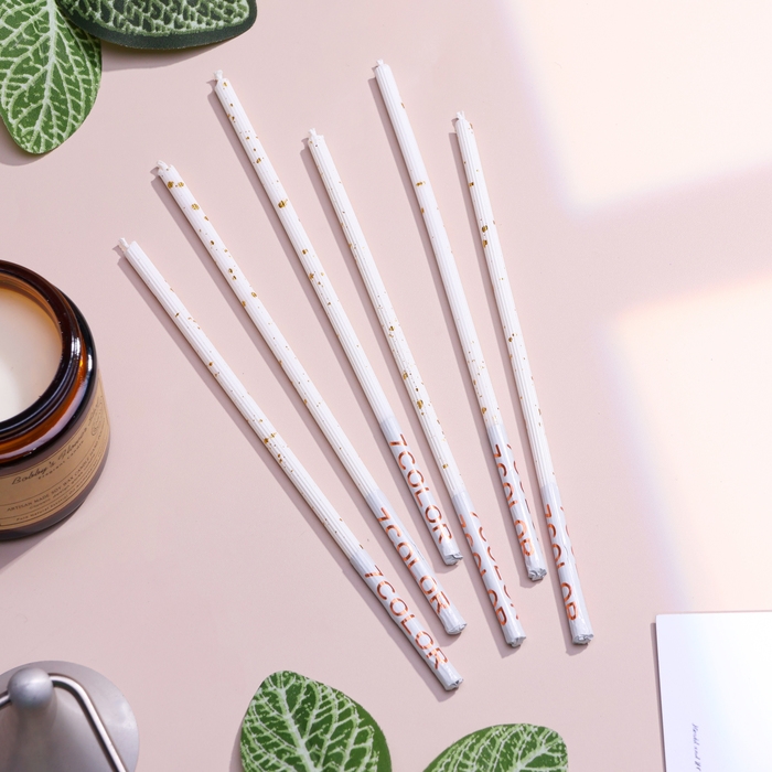 Набор свечей в торт, 6 штук "Исполнение желаний", 16,5 см, белый с золотом