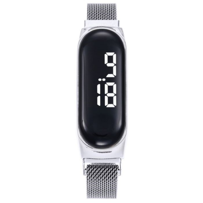 Часы наручные электронные мужские, магнитный браслет, серебристые