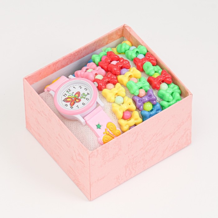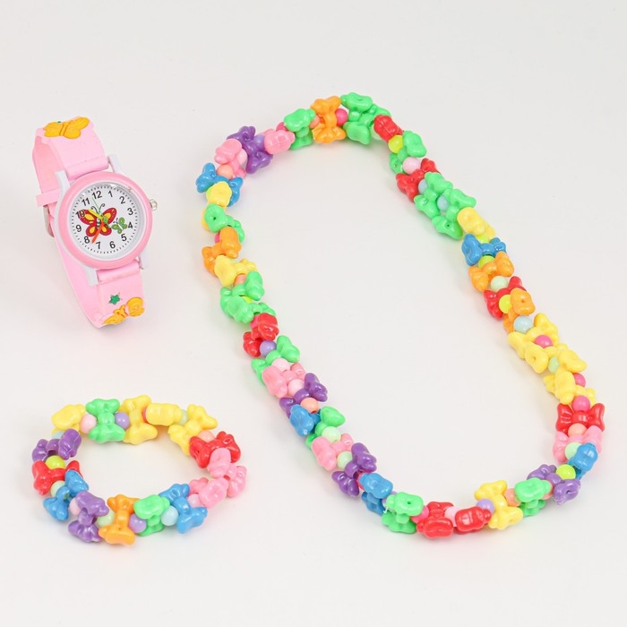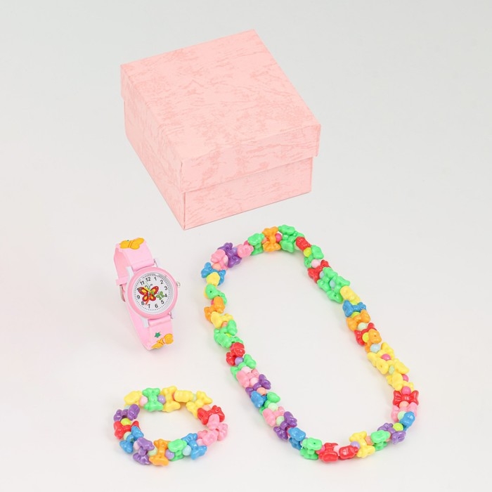 Детский подарочный набор для девочек "Бабочка" 2 в 1: наручные часы, бусы, браслет