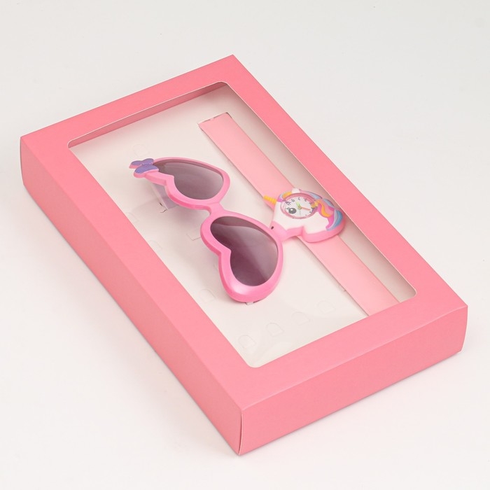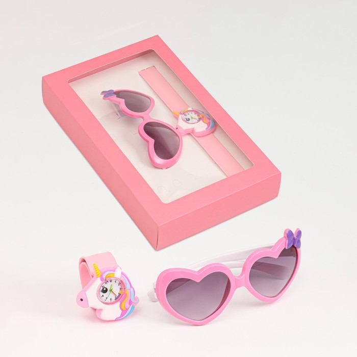 Детский подарочный набор для девочек "Единорожка" 2 в 1: наручные часы, очки солнцезащитные