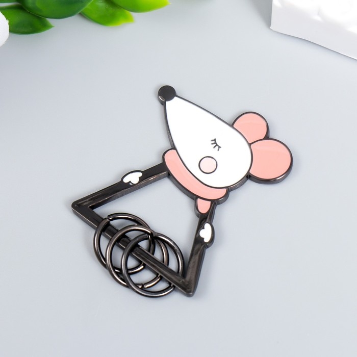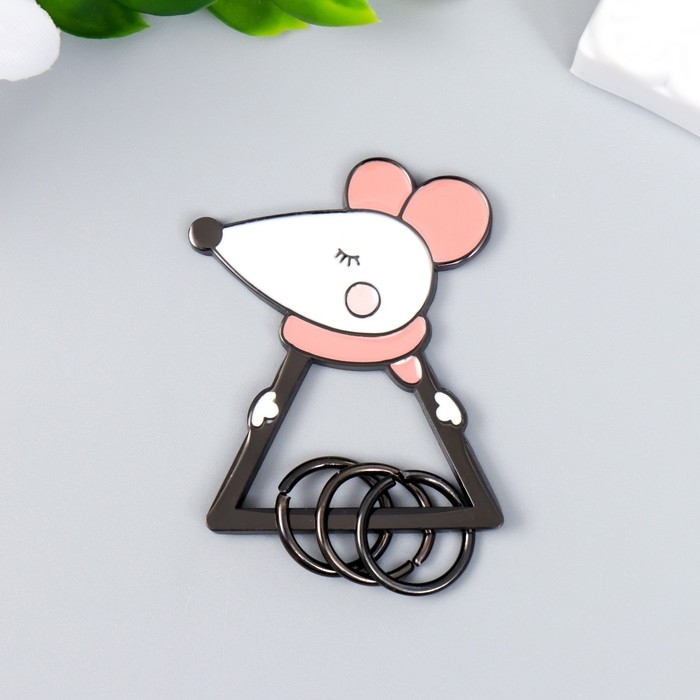 Брелок-ключница металл "Мышонок в шарфике" 4,4х3,7 см