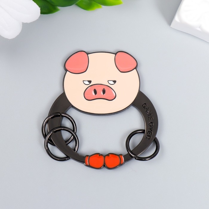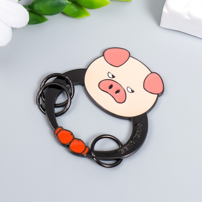 Брелок-ключница металл "Свин-боксёр - Игры кончились" 4,8х4,6 см
