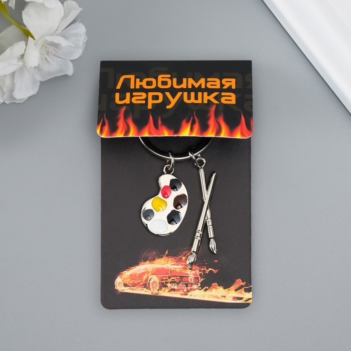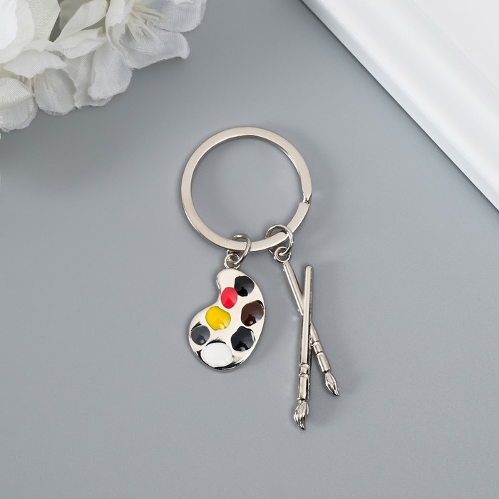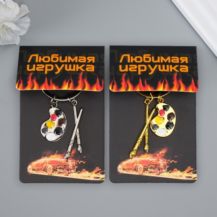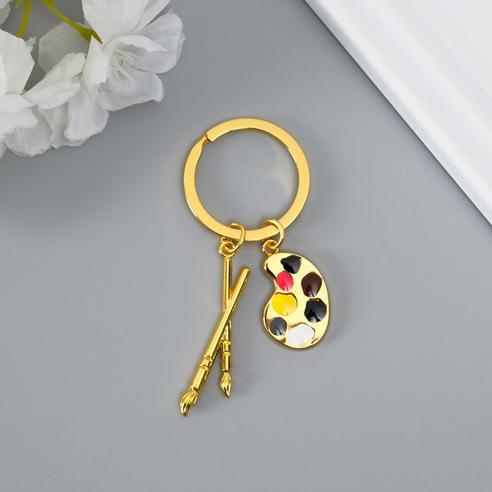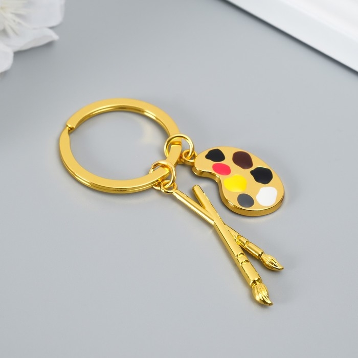 Брелок металл "Для художника - кисти и палитра" золото,серебро 7,7 см