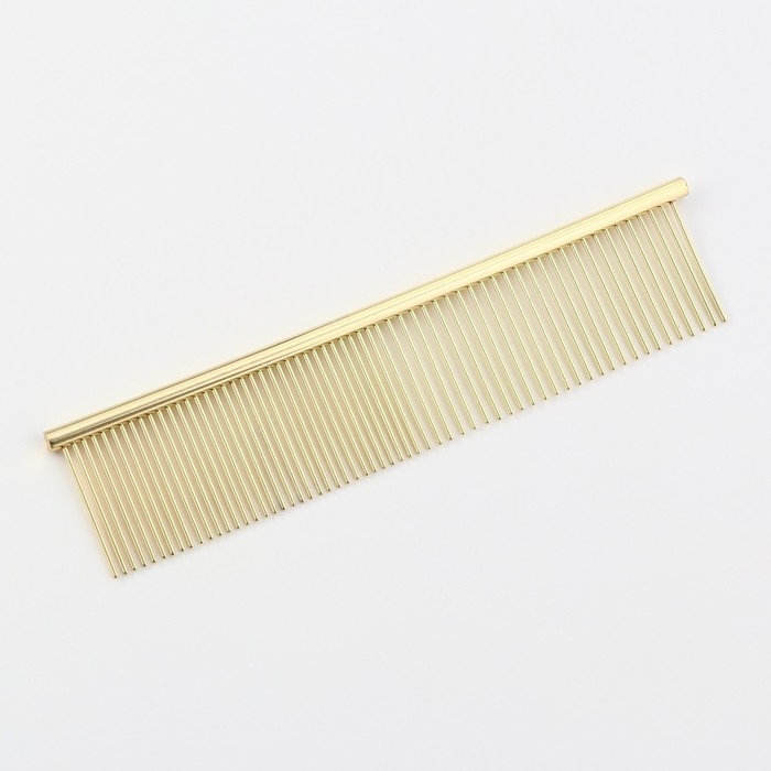 Расческа для шерсти с гальваническим покрытием, 18,8 х 4,2 см, золотистая