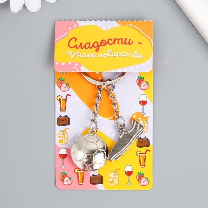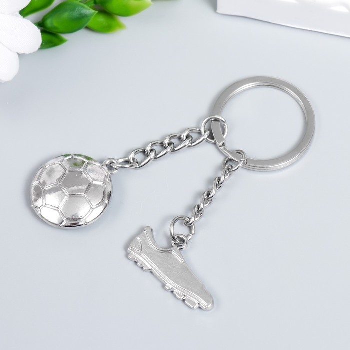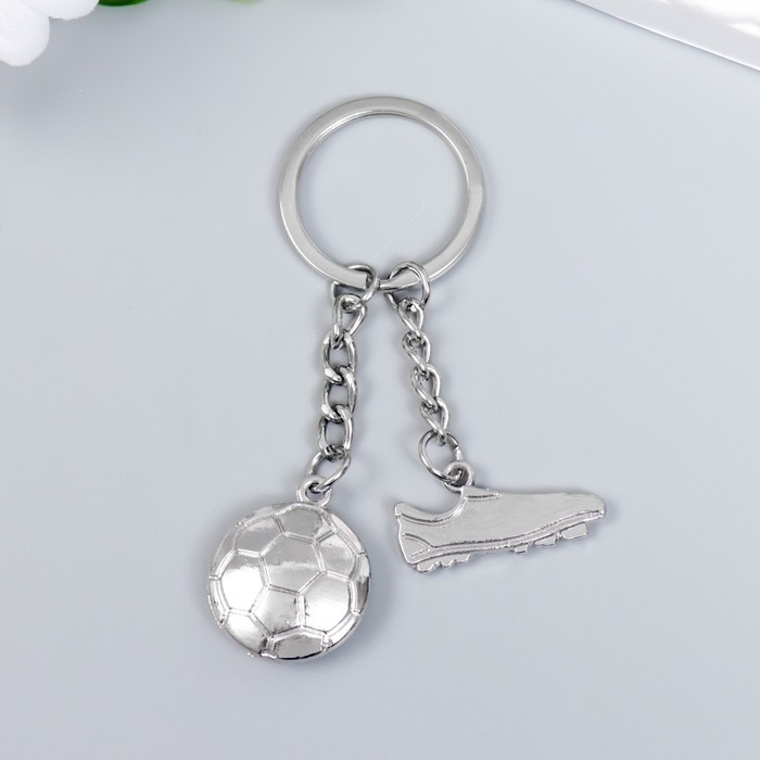 Брелок металл "Футбольный кед и мяч" серебро, мяч - 2,3 см кед - 1,5х3 см