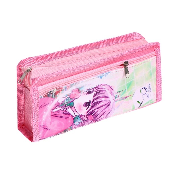 Пенал школьный текстильный «1 сентября: Grl аниме», 20 х 8 см