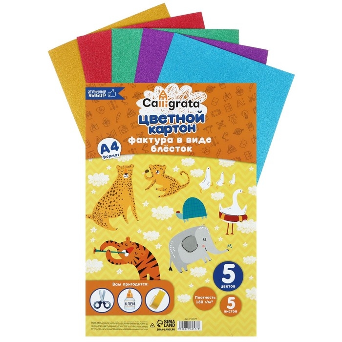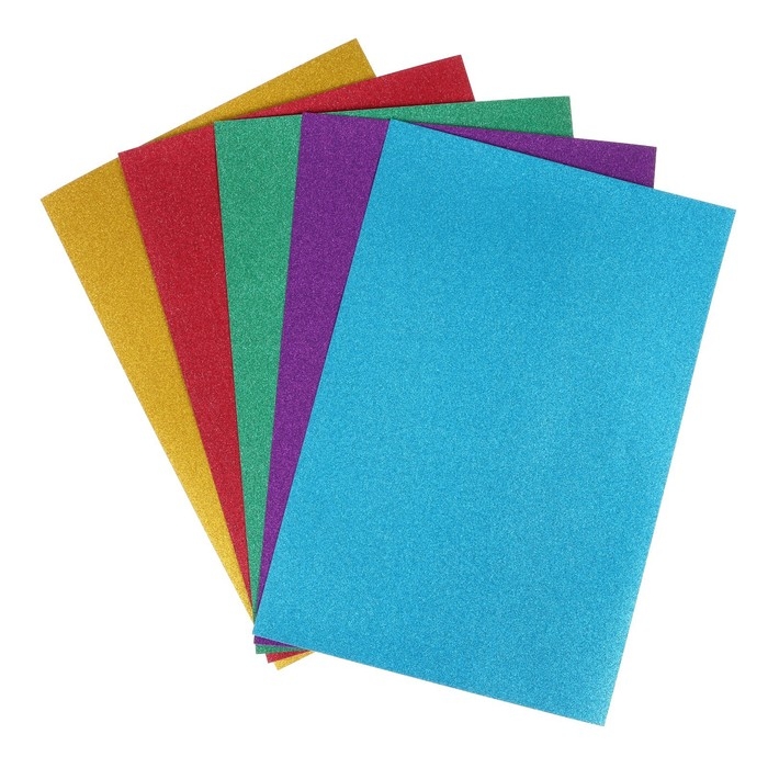 Картон с блёстками А4, 5 листов, 5 цветов, 180 г/м2