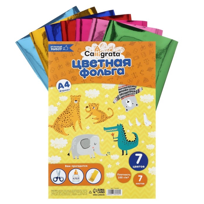 Фольга цветная А4, 7 листов, 7 цветов, 100 г/м2