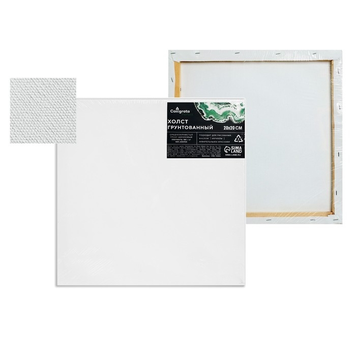 Холст на картоне Calligrata, хлопок 100%, 20 х 20 см, 3 мм, акриловый грунт, мелкое зерно, 280 г/м2