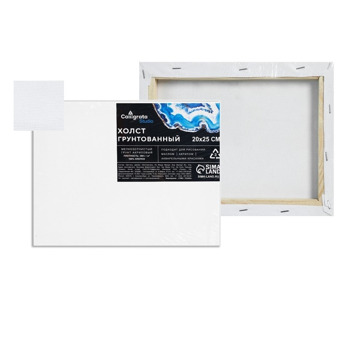 Холст на картоне Calligrata, хлопок 100%, 20 х 25 см, 3 мм, акриловый грунт, мелкое зерно, 280 г/м2