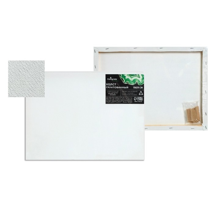 Холст на подрамнике, хлопок 100%, 1,6 х 18 х 24 см, акриловый грунт, среднезернистый, 380 г/м²