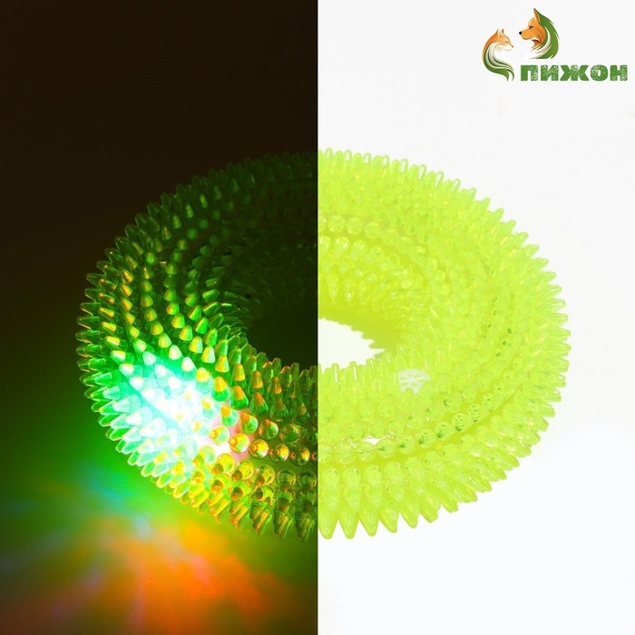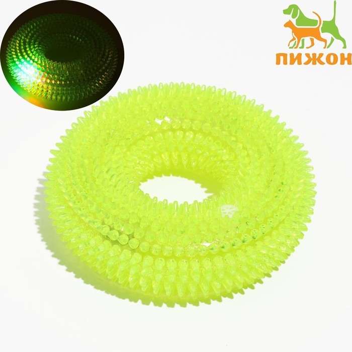 Игрушка светящаяся для собак "Жевательное кольцо", TPR, 12 см, жёлтая