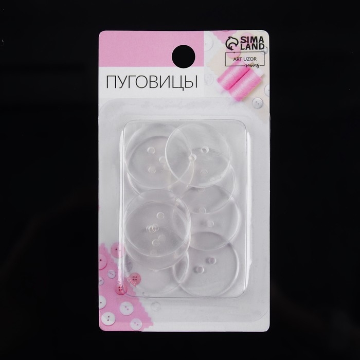 Набор пуговиц, 2 прокола, d = 25 мм, 10 шт, в блистере, цвет прозрачный