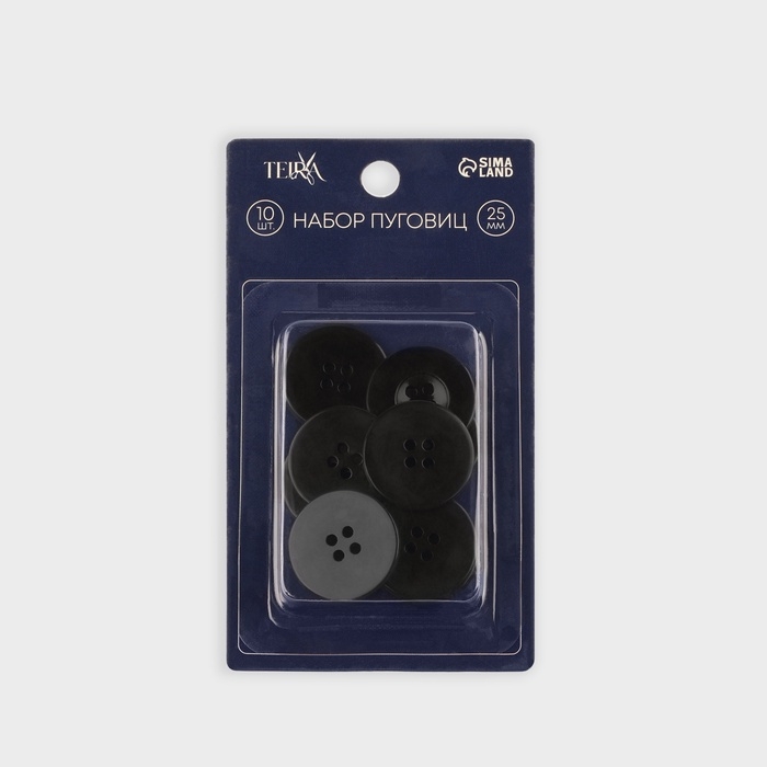 Набор пуговиц, 4 прокола, d = 25 мм, 10 шт, в блистере, цвет чёрный