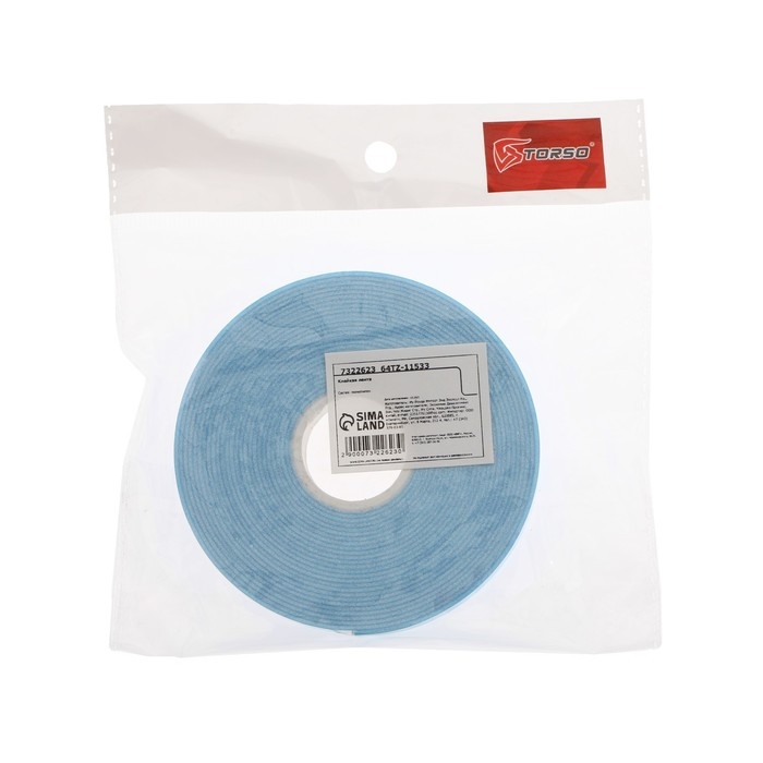Клейкая лента TORSO, двусторонняя, вспененная, синий защитный слой, 10 мм x 5 м