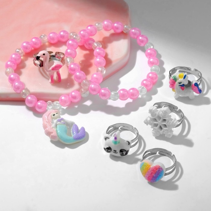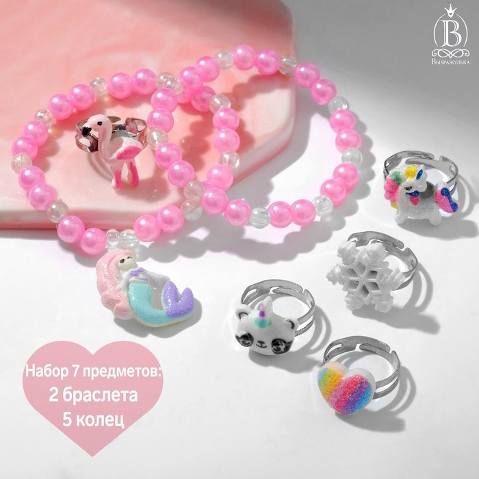 Набор детский «Выбражулька» 7 предметов: 2 браслета, 5 колец, русалка, форма МИКС, цветной