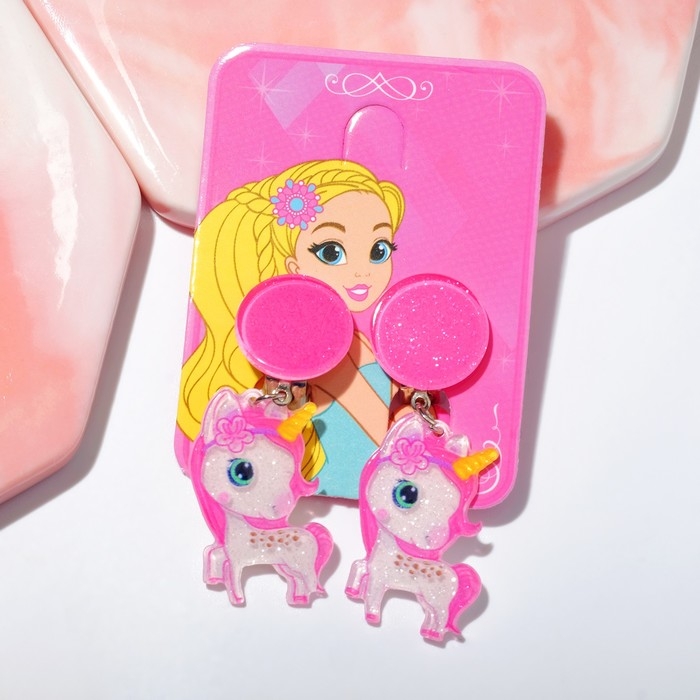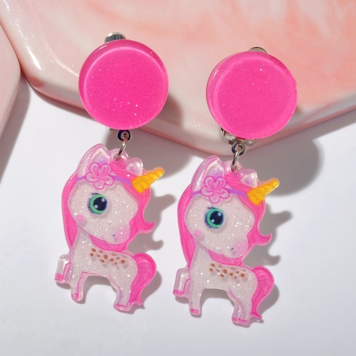 Клипсы детские «Выбражулька» сказка, единорожка с цветочком, цвет розовый