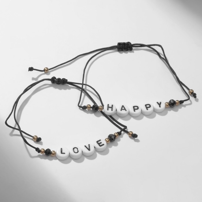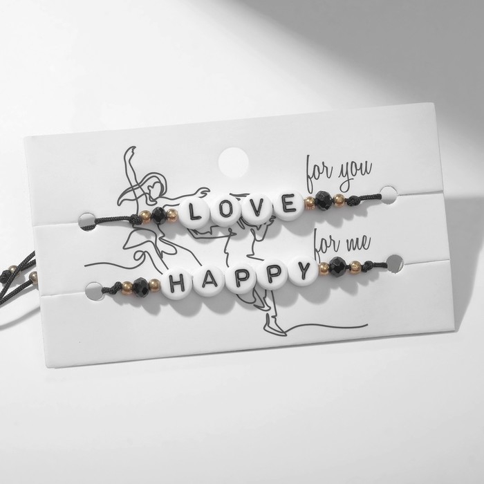 Браслеты «Неразлучники» бусины любовь и счастье, цвет чёрно-белый, 7 см