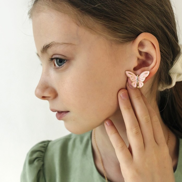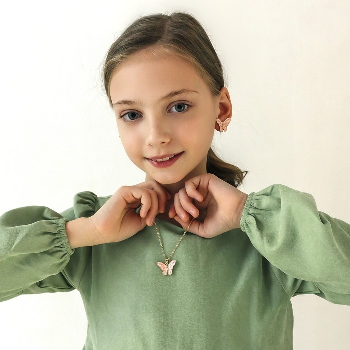 Набор «Выбражулька» 2 предмета: клипсы, кулон, бабочки весенние, цвет розовый в золоте