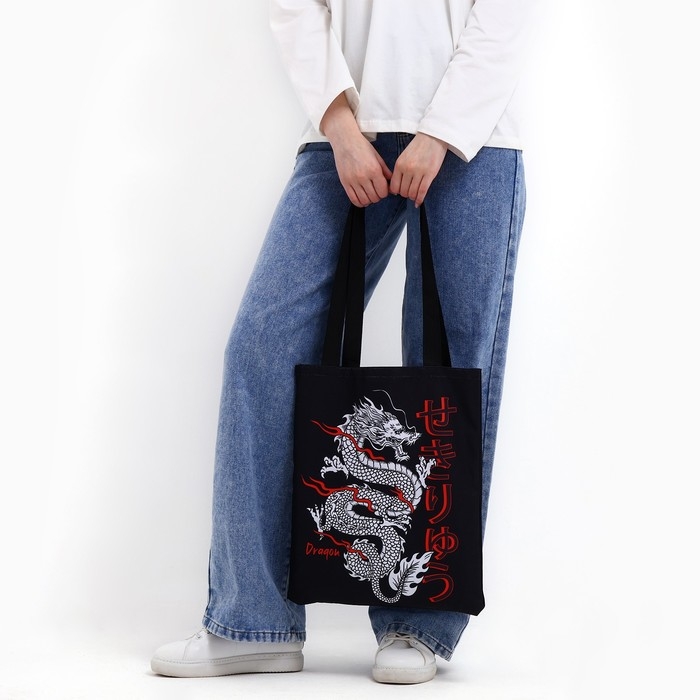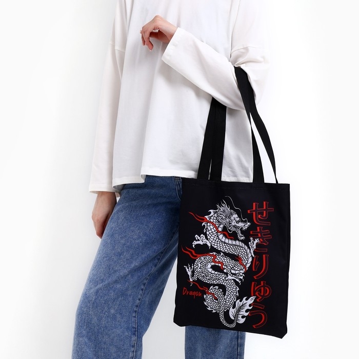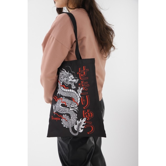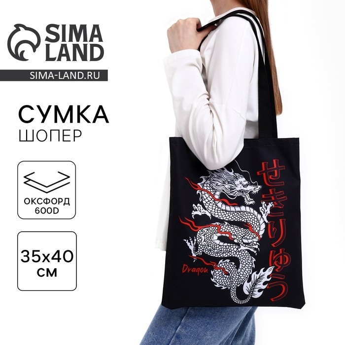 Шопер «Дракон» 35 х 0,5 х 40, отд без молнии, без подклада, чёрный