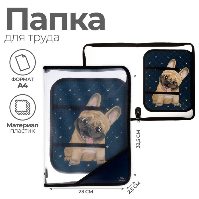 Папка для труда А4, 325 х 230 х 25 мм, молния вокруг, откидная планка, пластиковая, ПТР-1, Calligrata "Бульдожка"