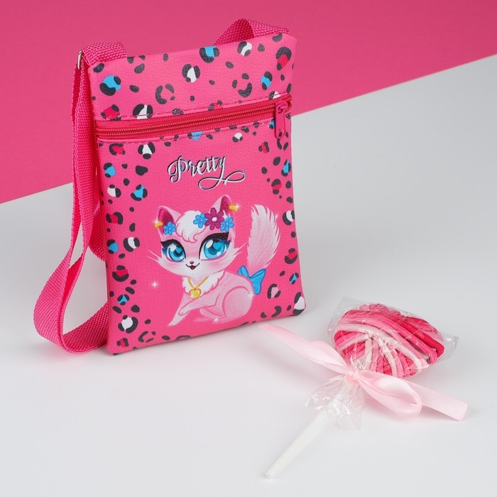 Подарочный набор для девочки «Маленькая кошечка», сумка, резинки для волос, цвет малиновый