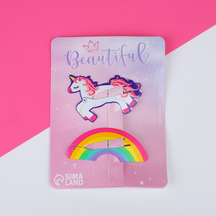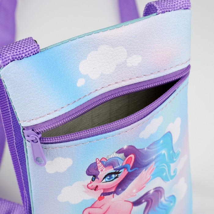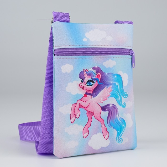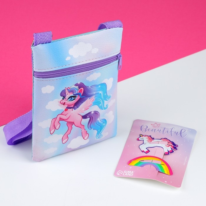 Подарочный набор для девочки «Единорог в облаках», сумка и заколки для волос, цвет голубой/сиреневый