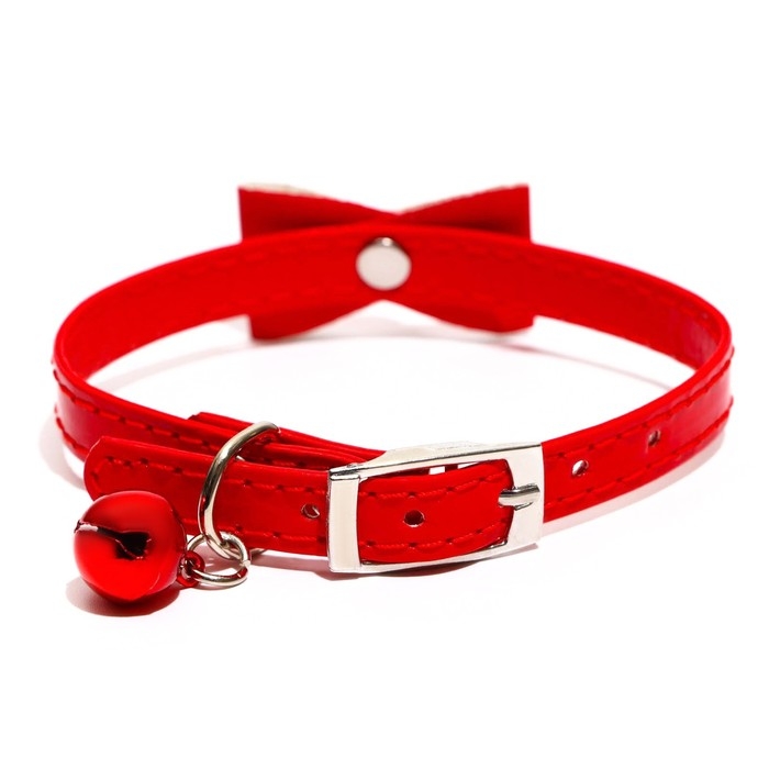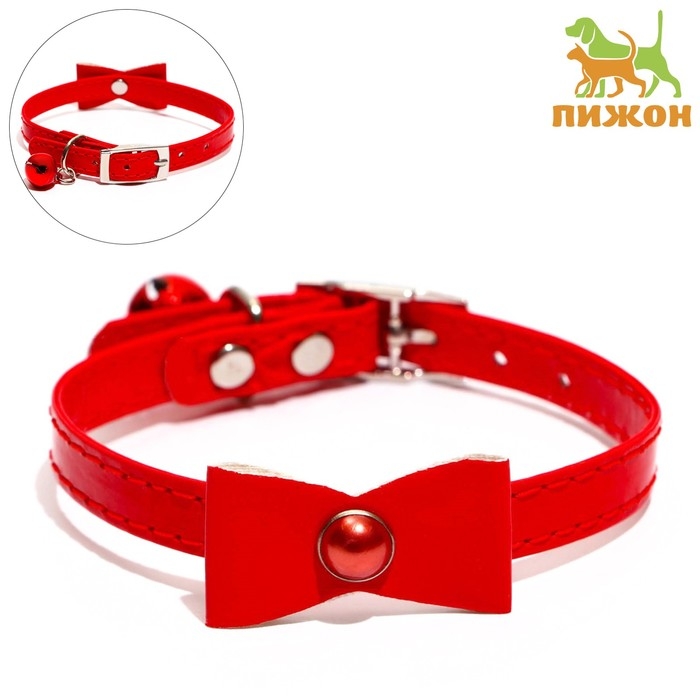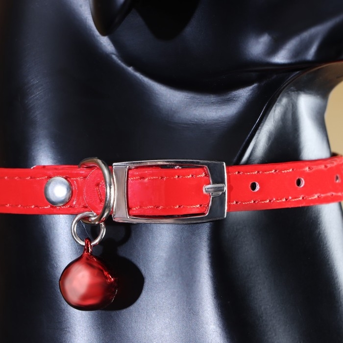 Ошейник "Сияние" с бусиной и бубенчиком, 29 х 1 см, ОШ 21-26, красный