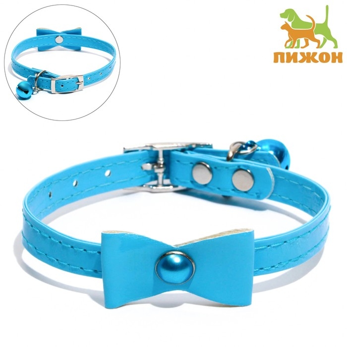 Ошейник "Сияние" с бусиной и бубенчиком, 29 х 1 см, ОШ 21-26, голубой