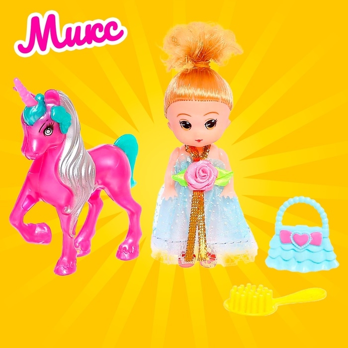Ваша принцесса любит играть в куклы и ухаживать за животными? Тогда этот набор с куклой, единорогом и аксессуарами точно порадует её! С ним ребёнок сможет придумать множество ярких игровых сюжетов.