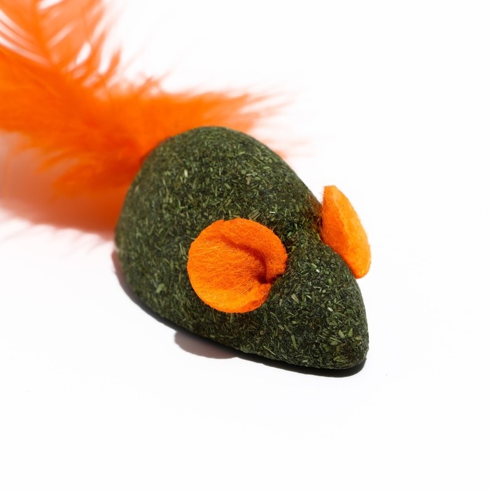 Мышь для кошек из прессованной кошачьей мяты с хвостом из перьев, 5 см