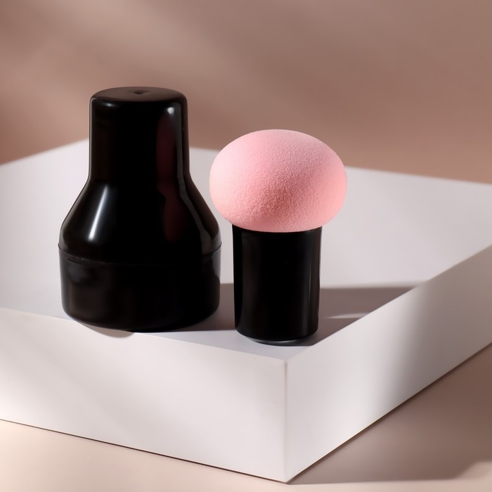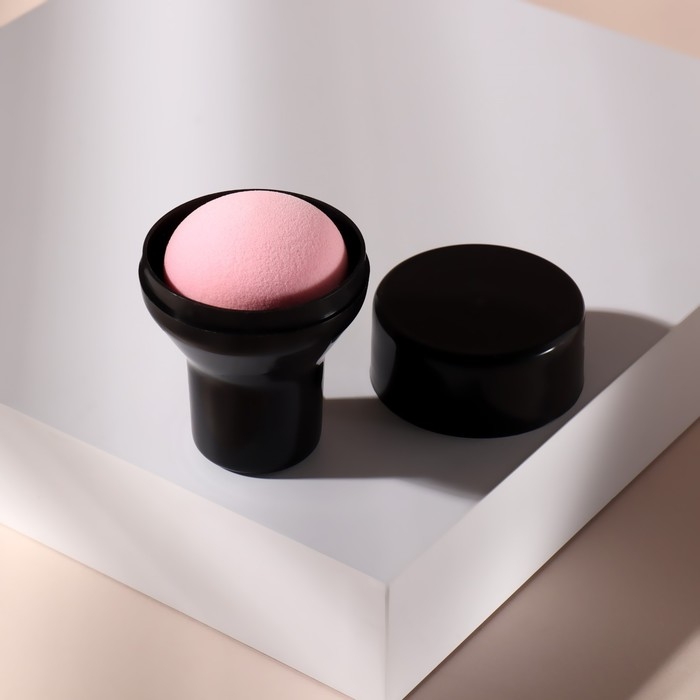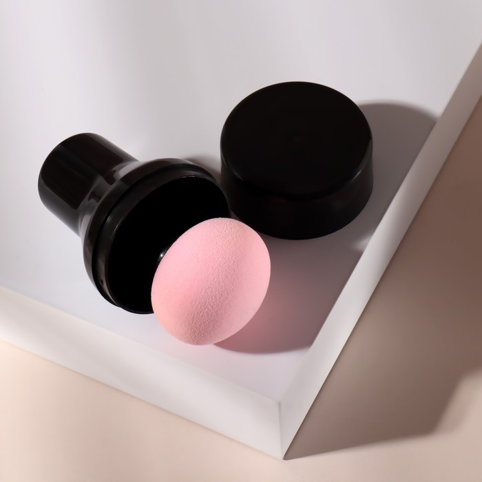 Спонж для макияжа с ручкой «Стик», d 4,1 × 3 см, в футляре, цвет чёрный/розовый