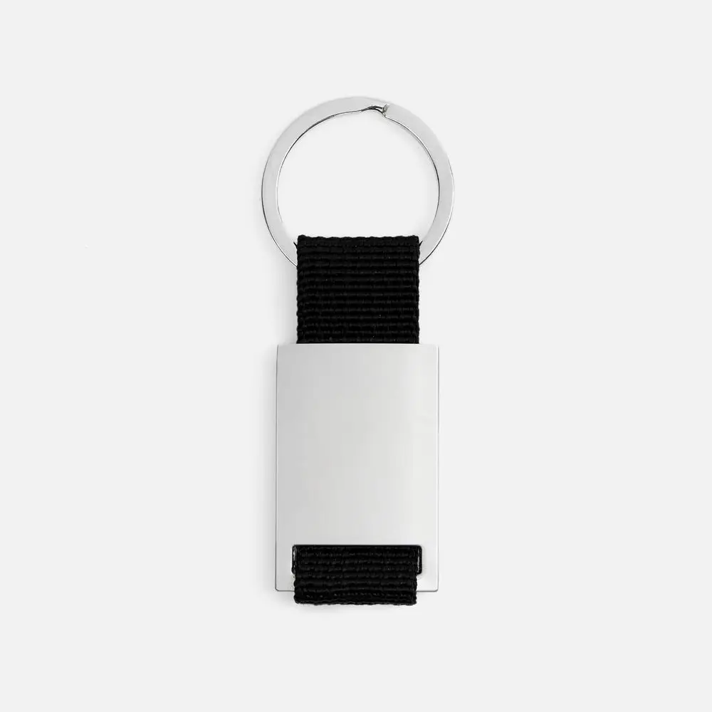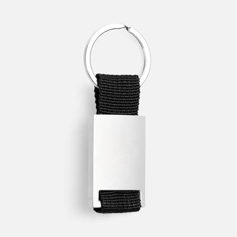 Минималистичный металлический брелок с тканевой вставкой.