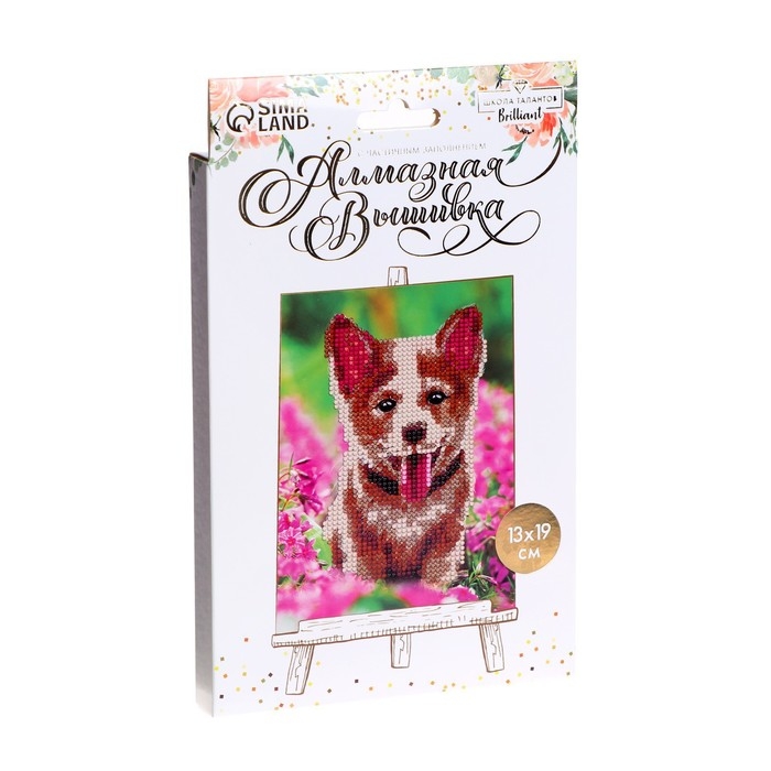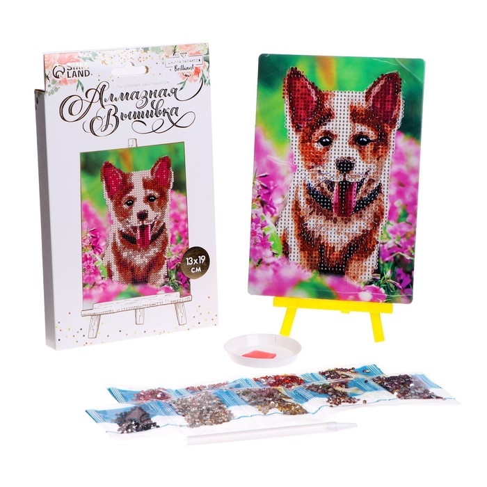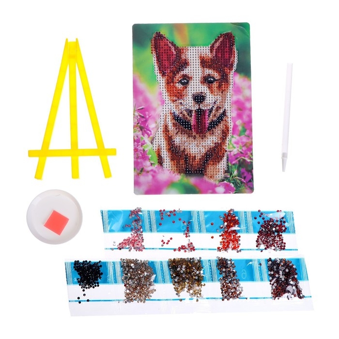 Алмазная мозаика с частичным заполнением на подставке «Собака в цветах», 13 х 19 см, картон